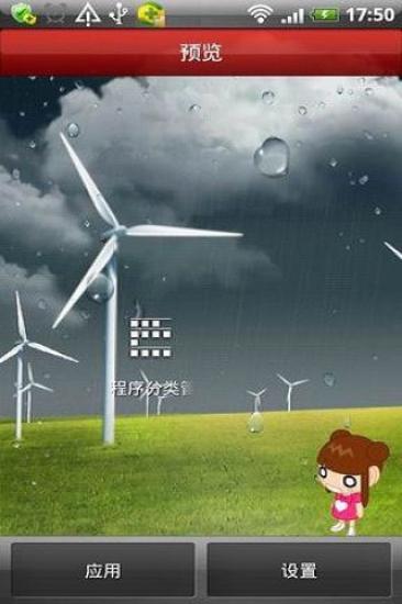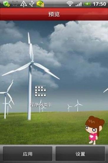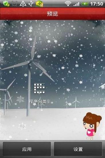 这款壁纸以草原,风车为背景,很清新。最奇妙的是可以变幻天气,晴天,阴天,雨天,雪天……每一个背景都十分美妙。