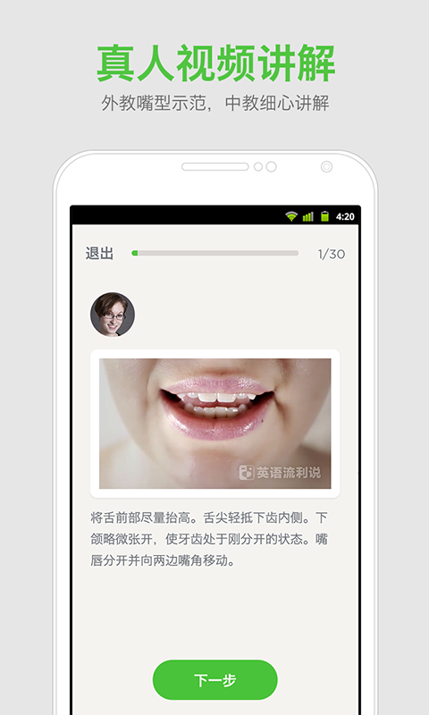 “口语发音教练”是专门针对中国人发音习惯研发的美语发音学习应用,高效精准地改善你的英语发音。