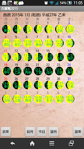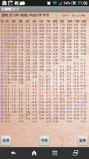 和暦基準で年間変換カレンダーを表示します。朔日 節気中の日時も合わせて表示します。