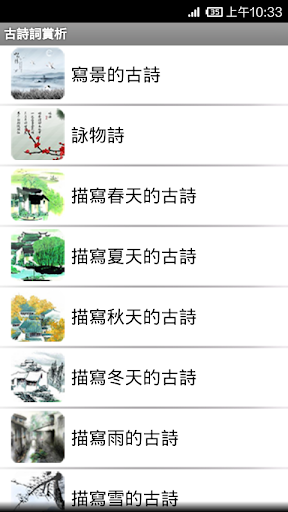 《古詩詞賞析》包含許多分類目錄,所有內容都是挑選最經典的詩詞整理而成,