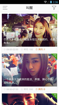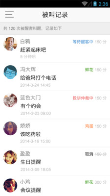全球首款真人实时语音叫醒;提供社会化叫醒服务的应用,可以约定别人在某一时间叫醒(提醒)你,你也可以申请成为叫醒(提醒)别人的人,被叫醒人要支付一定的费用给叫醒人。