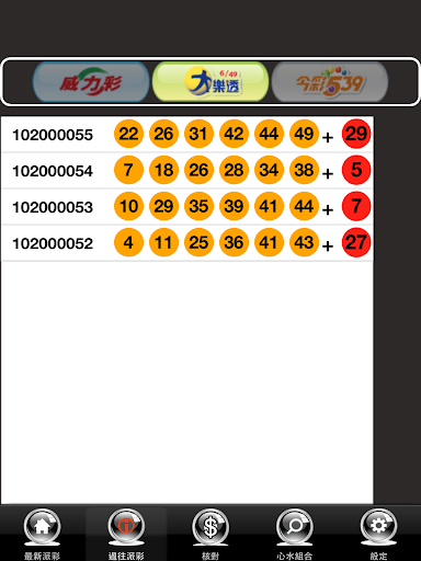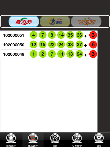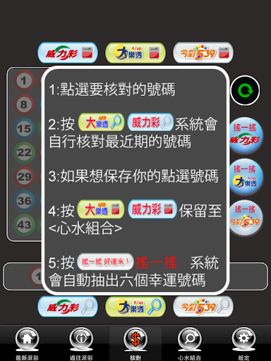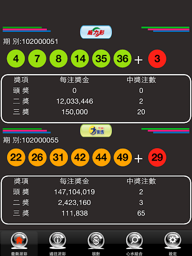 即時取得「大樂透」與「威力彩」的累積頭獎總額,並同時提供大樂透、威力彩、今彩539種離線對獎工具
