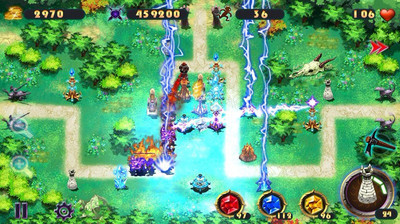 一款精彩的魔幻题材塔防类策略游戏。游戏中玩法的一大亮点是你需要通过收集宝石能量,根据不同的宝石组合改造防御塔,从而建设不一样的防御塔反击兽人大军!