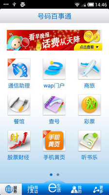 3. 手机应用----订机票、订酒店、订餐馆、查号码、买彩票、听书乐,E网生活应有尽有。