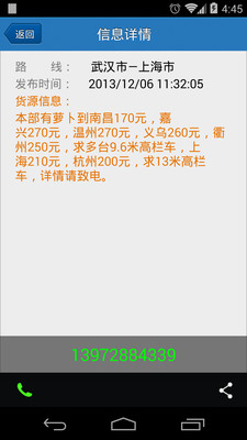 您还在为找货空等发愁吗?司机宝——货运司机的好帮手。终身免费查询货源信息的手机应用,拥有国内最丰富的货源信息资源,每天数十万条信息覆盖全国。同时,给司机朋友提供以下快捷服务:加入全国各地物流公司配货圈;接收物流公司第一手货源信息等。