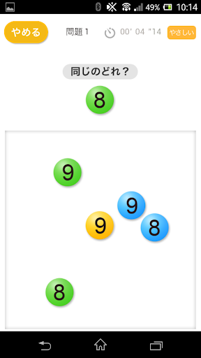問題の数字と色が同じものをタッチして当てるアプリです。