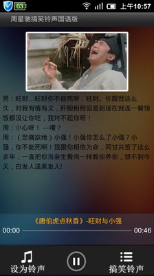 您还可以把喜欢的对白设置为铃声,让星爷的搞笑声音每天为您带来好心情。