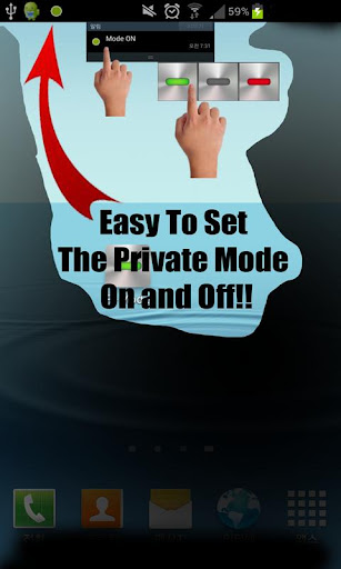 * ON按鈕啟動私人模式(開始塊每個電話和短信)註冊綠色圖標的通知欄。