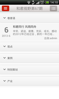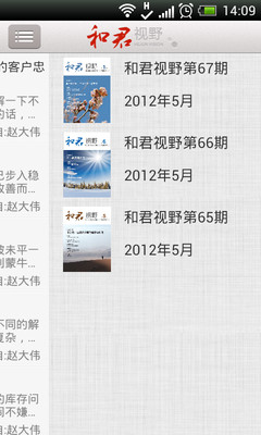 和君视野是一本独具特色的高端经济管理类期刊。 和君咨询的千人咨询师与投行家队伍、每年操作的几百个咨询和投资项目,以及十年来累积的两千家客户资源为《和君视野》提供了丰富的商学思想沃土。本刊以“丈量商业大地,感悟岁月人生”的办刊理念,针对中国企业实际需求,分享有建设性价值的思索、观察、见闻、感悟、阅读和心灵,致力于为本土企业成长提供思想动力和人文关怀。