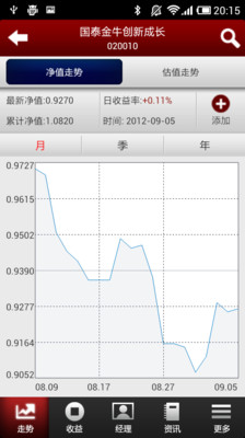 《和讯基金》是和讯网精心打造的一款手机基金理财软件。集基金净值查询、收益率排行、单位净值和累计净值走势、基金新闻、基金公告、基金F10信息(基金经理、持仓、基金份额分析)于一体,满足商务人士对基金数据、新闻资讯的移动需求。