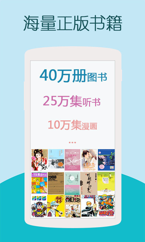 1、海量正版资源:超过40万册正版书籍,25万集听书,200多种手机报