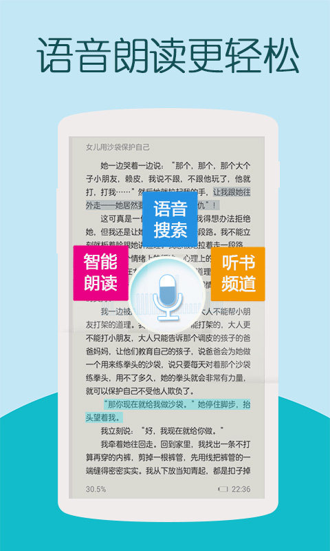 4、贴心语音服务:智能语音朗读,语音搜索,语音报新闻服务