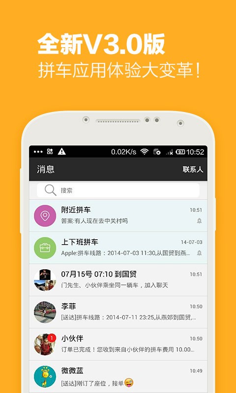 「哈哈拼车」具有非常强大的即时通讯功能,专为拼车定制。可以在沟通的过程中非常方便的完成预订和支付,可以一键发起跟同行的所有小伙伴群聊,免去单独沟通的烦恼,还可以加入拼车群,与熟悉的人一起拼车。