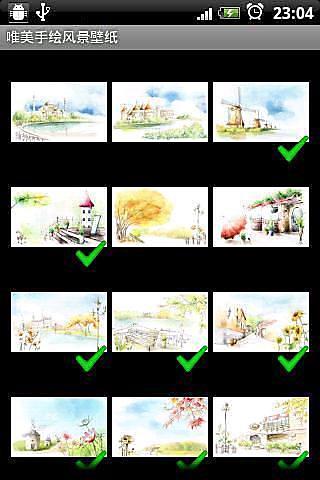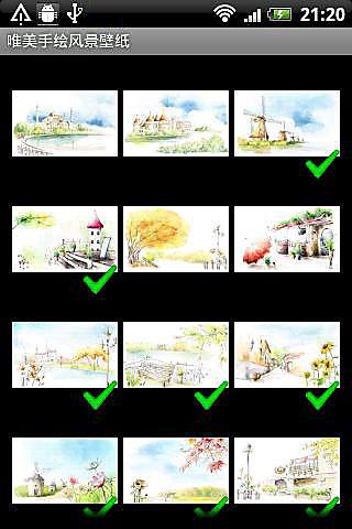 精选多张非常唯美的手绘风景图片, 画面简洁清新,非常有意境。定时随机切换选中的图片。 采用最新技术, 非常省电。