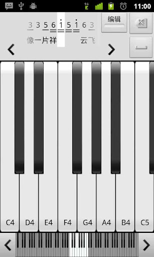 本软件提供钢琴键盘输入乐谱(从编辑按钮进入),和对话框方式输入歌词(从编辑界面菜单进入)。从而生成简谱显示,并提供midi和乐谱图片两种方式导出乐谱。