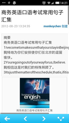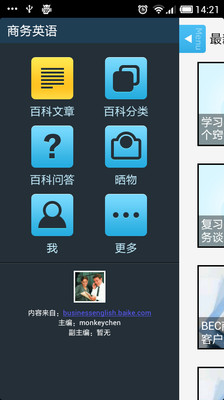 商务英语是以适应职场生活的语言要求为目的,内容涉及到商务活动的方方面面。商务英语android版,教你如何和外国人打交道,如何和他们合作,了解他们工作的方式方法等。