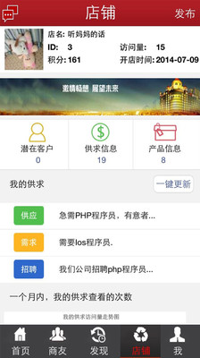 5、会员可以自由开设店铺,发布自己的供求 、招聘和产品等信息