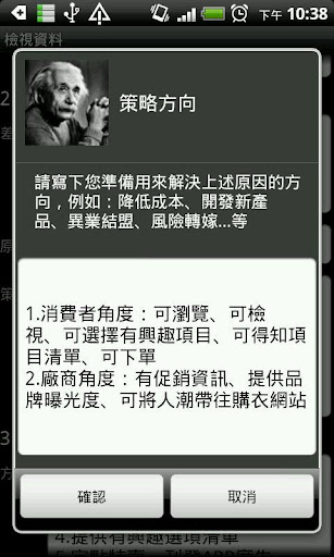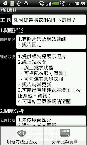 1.提供問題分析的架構格式,並可儲存下來供反覆修正及日後查詢