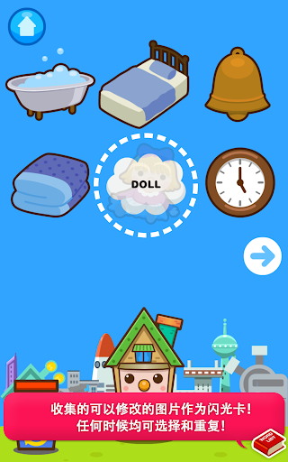 首先,一个色彩鲜艳、面带微笑的机器人会显示一些看似随意的字母。 选择正确的字母并将它们喂给机器人,机器人会以动画效果响应——显示一个图片,说明这个单词的定义。 当年幼学习者对大写和小写字母不熟悉时,可使用屏幕右下方的大小写切换开关。 这有助于孩子们学会辨别大小写的差异。 学习者正确完成一个单词游戏后,会自动保存在词汇书中。 孩子可在之后复习收集的单词,像卡片一样翻阅它们进行复习,或用一个机器人重放游戏。