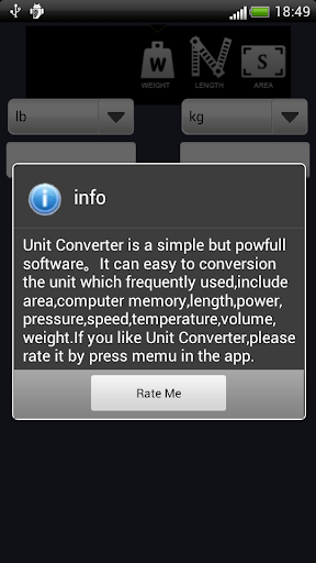 單位換算器可進行長度,面積,體積,質量,壓強,溫度,功,功率,時間,電腦數據的換算。