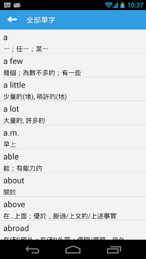 單字全能大師,是您英文單字學習的好幫手,單字全能大師包含最多英文單字、最齊全的單字學習分類,以及友善的使用者介面。