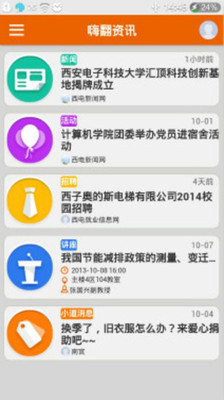 嗨翻校园是一款帮助校园用户获取资讯、解决吃喝玩乐等需求的校园应用。嗨翻为校园用户提供招聘信息、精彩活动、校园讲座等资讯的个性化定制,提供查询图书、快递查询、校园地图等校园常用的功能。小清新的UI设计,实用的功能,支持社会化分享,新浪微博、腾讯微博、人人网、豆瓣等多平台同步,是校园用户的贴心生活助手。