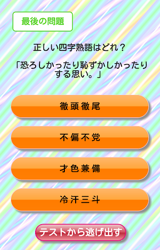 ・四字熟語テスト【初級者編】のアプリをやっている方。