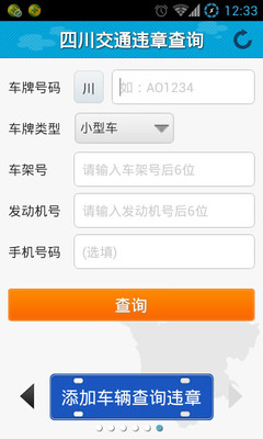 四川交通违章查询(weizhang.zuzuche.com)是一款能实时查询机动车在四川全省交通违章信息的手机应用,数据由四川交警部门最新发布的车辆违章记录及驾照扣分信息,覆盖成都、绵阳、攀枝花等四川全省城市,随时随地查询您爱车的违章信息,避免因遗忘或逾期处理违章罚单而造成不必要的损失。我们将不断添加全省份交通违章的数据,用户可以通过免费升级进行更新。