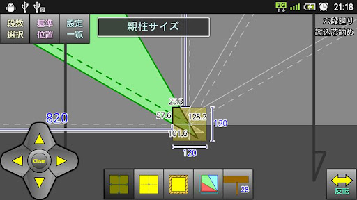 建築現場での回り階段施工時、親柱に対しての段板切欠き寸法を簡単に表示できる大工さんのためのアプリ。
