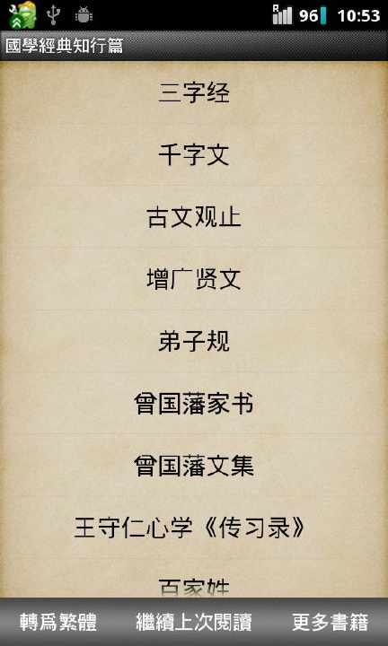 知行篇收录了:三字经,千字文,古文观止,增广贤文,弟子规,曾国藩家书,曾国藩文集,王守仁心学《传习录》,百家姓10本久经时间考验的国学经典著作。是目前网络上能找到的最完美的版本。因为内容太多的原因,包体比较大,下载需要些时间,请耐心等待,我们保证,分秒的等待都是值得的。