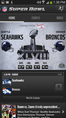 Note: Data and messaging charges apply when downloading and using NFL Mobile. LIVE Video support on Android tablets is available from selected cable or TV providers. In-game highlight videos are currently not available on smartphone devices. Due to rights restrictions, live video playback via HDMI cable is not supported. Location information may be required to enforce NFL Blackout restrictions of live games. An SMS message will be sent during the initial launch flow to verify your Verizon subscription status. 'Read phone status and identity' allows the app to access the phone features of the device. This permission allows the app to determine the phone number and device IDs, whether a call is active and the remote number connected by a call. ‘Your personal information’ in ‘App Permissions’ allows NFL Mobile to add Super Bowl related events to your calendar and to make sure events are not being duplicated.
