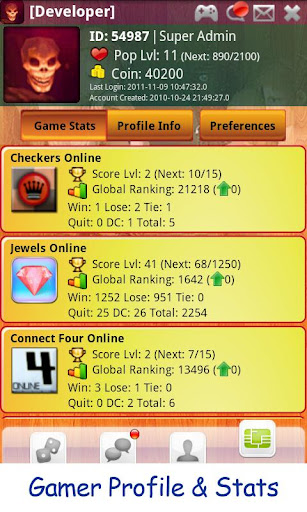 详细方便的用户信息管理,包含详细游戏历史记录,个人信息,上传头像等等!