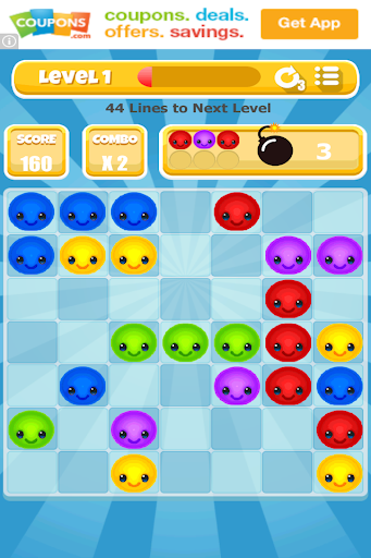 发挥极致连接4益智游戏!这是很容易上瘾,超级好玩的,硬,一旦你开始玩放下。点击一个点,将其拖动到一个开放的瓷砖来移动它的位置。连接四个或更多点颜色相同的水平,垂直或斜连成一线,以清除它们和接收点。用你的3炸弹除去已作出连接阻塞你点。清除50行移动到一个新的水平。