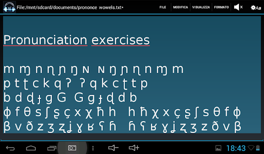 帶鍵盤的觸摸屏與字符集Unicode的國際音標注音(國際語音協會)的文本編輯器。