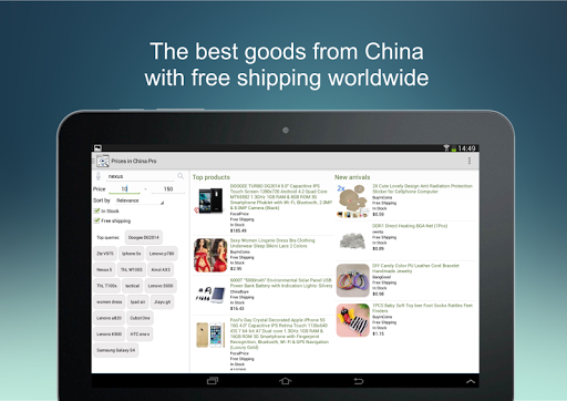 此应用程序能让您直接从中国的网上店铺搜寻和订购物品,无需额外收费和代理服务。它怎么帮您节资呢?它能让您购买正在减价的物品,利用各种减价固本和集体购买物品。毋庸置疑,一次性的搜寻和比对十来间中国网铺的价格的确是方便得多了。每个月约有200000个用户游览我们的网址和应用我们的Android应用程序来挑选物品和店铺。我们并不参与买卖,我们的主要目的是帮您在最流行的中国互联网商店找到最和您心意的价格。