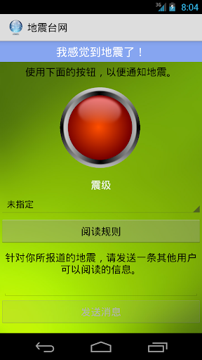答:按下按钮“通知”地图。星形图标代表在过去24小时内所发出的通知。绿星:轻度震级;黄星:强烈震级;红星:非常强烈的震级;黑星:由其他用户报告的虚假地震。