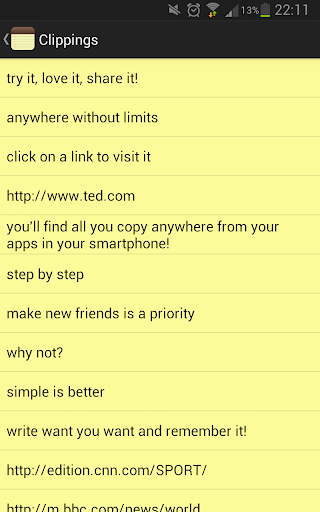 - 剪報(剪貼板歷史)選項卡,與所有的任何地方複製到智能手機,以備日後重新使用或共享的剪輯顯示剪貼板歷史