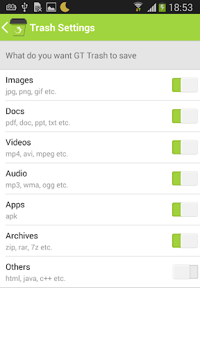 • 自動保存刪除的圖片、照片、文檔、音視頻、應用程式apk、壓縮檔等,您可以隨時找回丟失的數據。