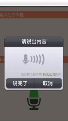 3.语音输入完成后,开始识别,识别完成,会在界面上显示您输入的命令和得到的计算结果。