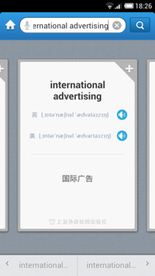 历经四年,全国近百位词典编撰专家倾心打造,《外教社英汉汉英广告学词汇手册》2009年12月第1版手机版同步发行。软件收录了广告学基本词汇(英汉、汉英双向收词9000余条),是广告学专业必备手册。海词词典(中国第一个在线词典dict.cn)携手外教社官方权威正版发布,具备手机上最便捷的查词功能(摄像头查词、语音查词等),还有清晰发音、生词收藏、生词辅助记忆等学习功能。选择高品质词典和词汇手册,学习更有保障!(版权所有,盗版必究)