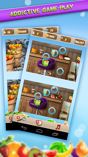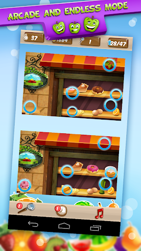 在每個級別的開始你會考慮到,在第一,可能你會出現兩個相同的圖片!但他們沒有!你的任務是尋找到這些照片不同,完成的水平!當卡住時,可以使用提示或有助於揭示的區別之一或得到一些額外的時間。但記住,你只能使用其中每級一個,所以盡你所能發現你自己的差異,做一個水果忍者!