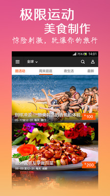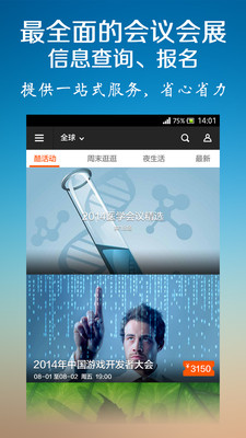 生活、工作全能助手,一个app让你乐悠悠的活。简单粗暴的收集全球各大城市的活动信息,涵盖 旅行本地体验、美食制作、娱乐演出、商务会议等精彩活动,致力于为小伙伴们展现更加丰富多彩的周边及你将要去的远方。并提供最快速的购票入口,参加活动简单便捷.