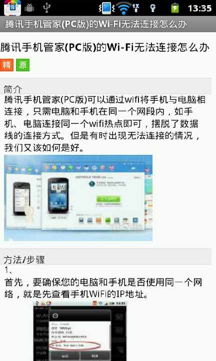 手机管家使用教程,包括: 腾讯手机管家(PC版)的Wi-Fi无法连接怎么办