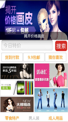 天天特价淘Android客户端-提供天天超低折扣的特价商品信息,搜宝贝,淘遍网上超级特价优惠的宝贝,为您每日精选聚合最划算的淘宝商品每天上午10:00准时开抢包邮超值淘品。天天特价淘让您不必再费力逛遍商场淘货,不必再劳心商品价格和质量.每天分享特价特卖的宝贝,是您手机购物省钱的好帮手,最好的特价购物软件。