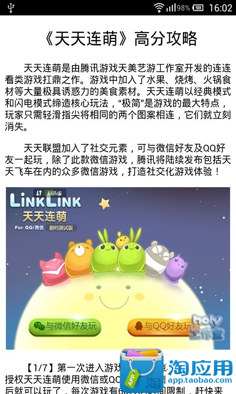 天天连萌是由腾讯游戏天美艺游工作室开发的继天天爱消除之后的一款连连看类游戏作品,同时也是首款基于腾讯移动游戏平台微信平台的手机游戏。主打“连连看”游戏类型,游戏的玩法主要分经典模式和闪电模式两种,引入了微信及QQ的用户关系链,提供了向微信、QQ好友推荐游戏,分享游戏至微信朋友圈及好友排行榜等功能。小编在此为您准备了天天连萌攻略,让你在朋友中大显身手!