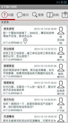 天平随行律师是一款手机咨询律师软件法律面前,人人平等,每个人都需要享有更优质、经济、便捷的法律咨询服务,预防法律风险,保证合法权益不受侵害咨询:按照咨询问题的分类,提出问题,有律师进行详细解答,有问必答。
