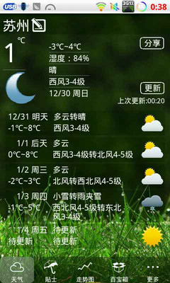 6.快速天气分享功能,方便快捷的分享功能使您在最短时间内通过微博、短信告知好友最新天气状况。