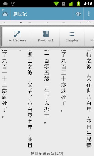 -預設全螢幕, 閱讀時按中間彈出功能表,點選兩邊至上下頁.