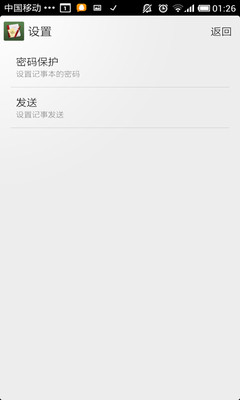 长按记事,出现上下文菜单,选择"设置密码",输入密码,如果输入空密码,则相当于清除密码.