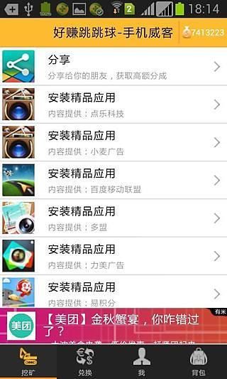 最全面的网赚工具大集合,安装游戏的同时返回给您的积分,可以用来冲话费,返现金。 您可以通过 安装推荐应用 收看广告 完成任务 多种方式挣取您的佣金,充分利用闲暇时间,完成个人网络财产的升值。 还等什么,马上开始您的网赚之旅吧,保证好用,好赚。 !!恭喜发财!! 【基本信息】 作者:江苏鼎格电子科技有限公司 更新时间:2014-05-09 版本:1.40 系统:Android 2.2.x以上 语言:中文 【更新内容】 1. 加入了矿石熔炼的功能